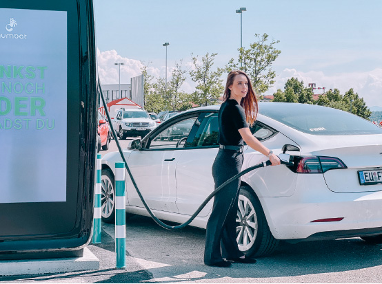 In addition to the high-power charging revenue stream, Numbat’s innovative technology generates revenues from digital out-of-home (DOOH) advertising and energy management services – the former via two, 75-inch screens on each station and the latter by setting up a virtual power plant by connecting batteries, which makes it possible to trade on the spot market and provide peak shaving and grid balancing services.